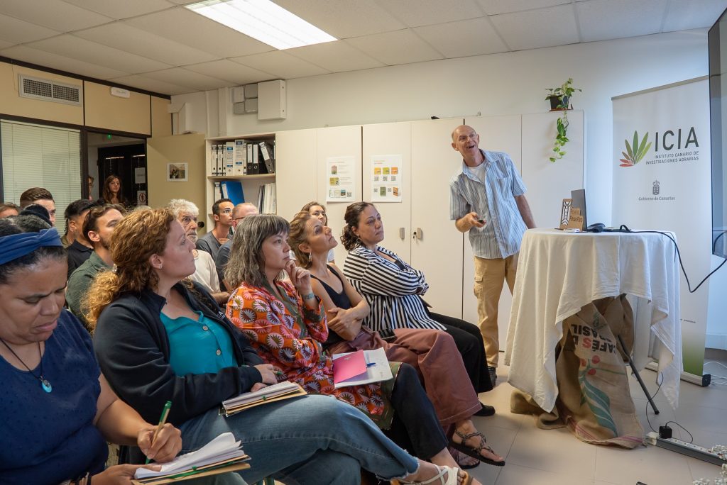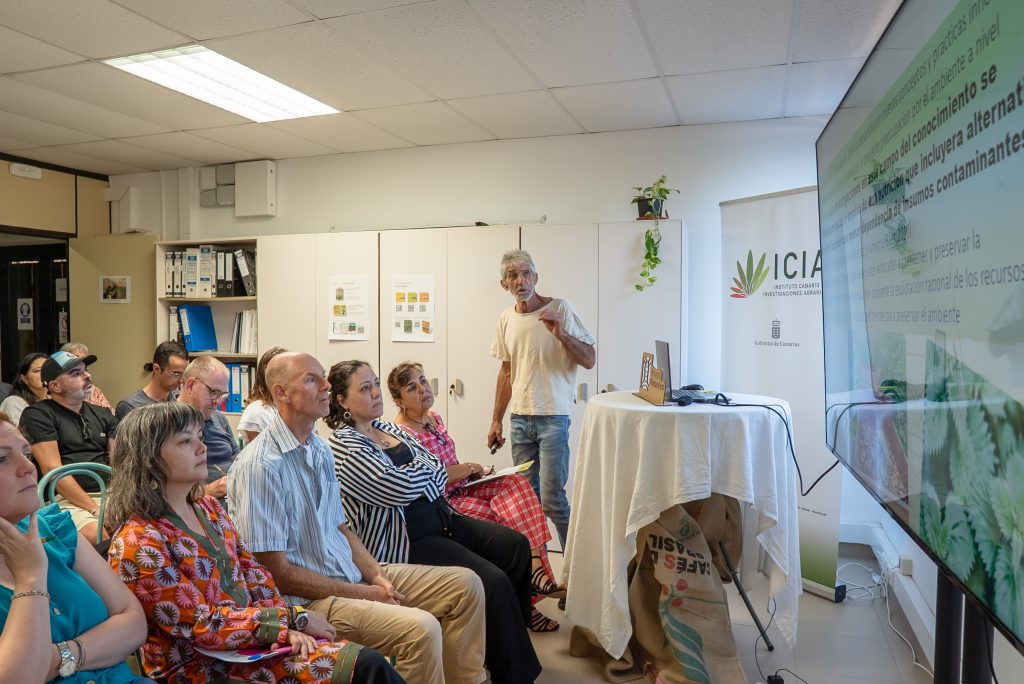 Durante la jornada se presentaron diversas ponencias sobre prácticas agroecológicas aplicadas en las fincas de la Red, experiencias con biochar, diseño de áreas de biodiversidad y estrategias para fortalecer la autosuficiencia en la producción agrícola. Además, se realizó la presentación de las publicaciones Bases Científicas y Técnicas para la Transición Agroecológica y Agricultura Vernácula de Canarias. Fundamentos para un futuro Agroecológico, coordinadas por el ICIA.